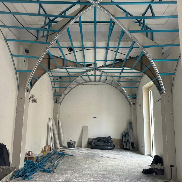 Progetto ideato e realizzato per l’interno di una unità immobiliare, le richieste della committenza erano di creare all’interno della propria abitazione dei controsofitti caratterizzati da volte a crociera.